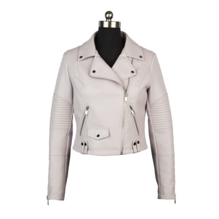 Women white Biker Leather jacket